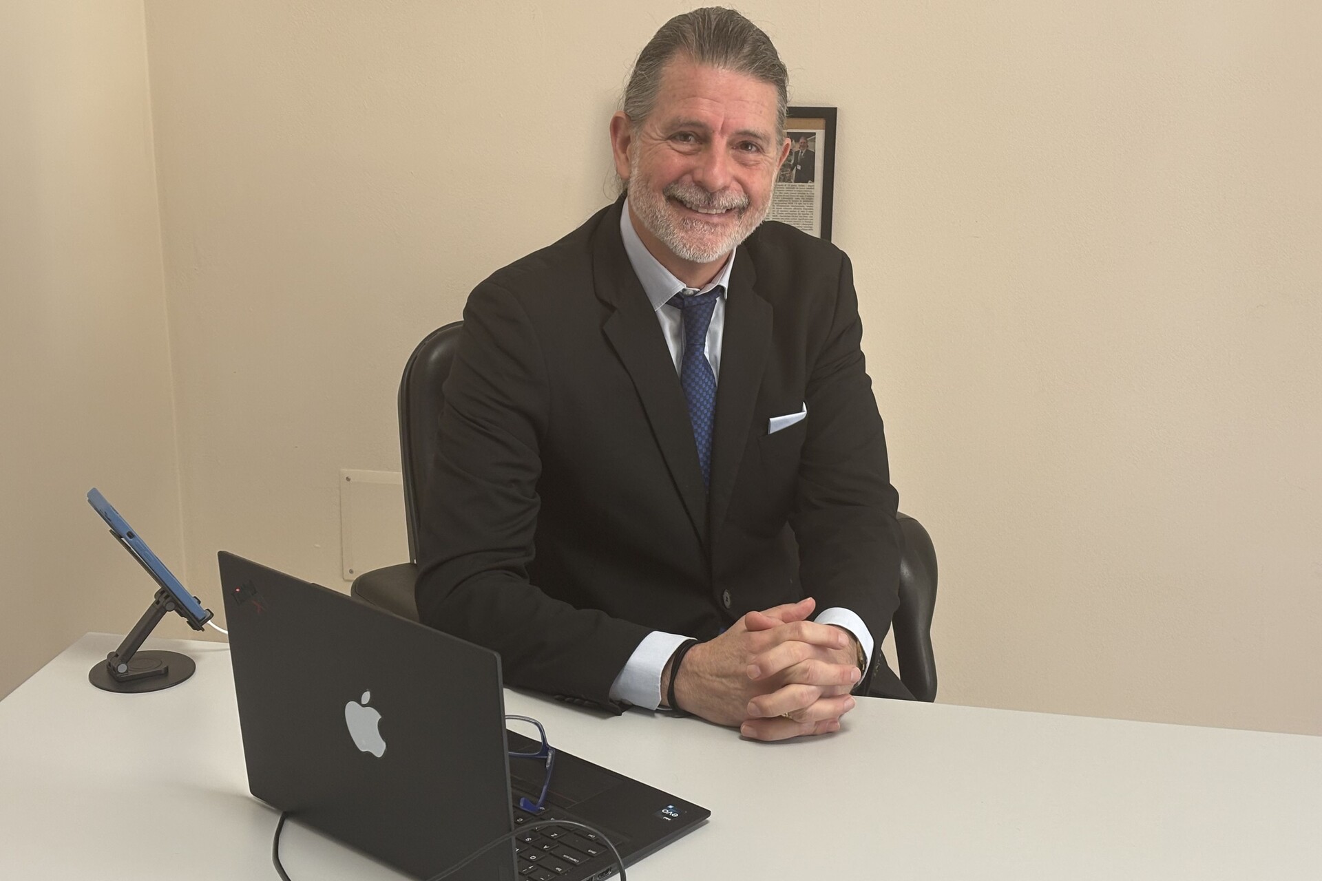 Michael Van Driel pictured at his desk in Lifemotion’s headquarters, in a work context that recalls the link between technological development, business organization, and responsibility towards the clinical contexts of use, where design choices translate into operational solutions for the daily practice of extracorporeal therapy (Photo: Alice Luppi/Lifemotion)