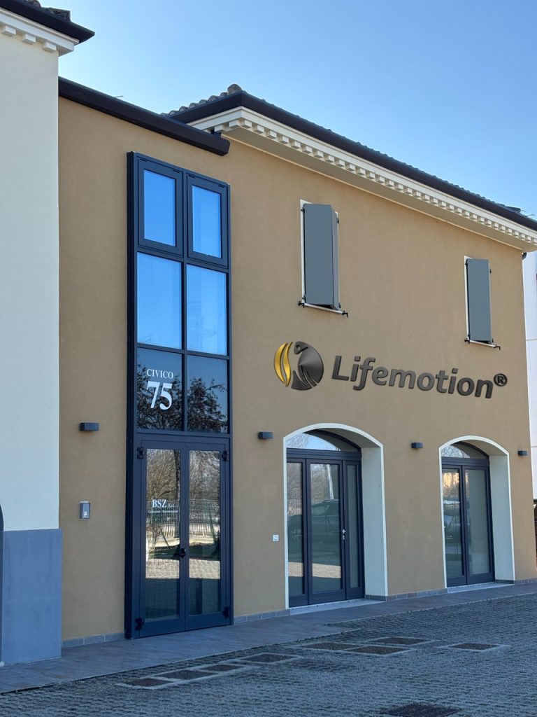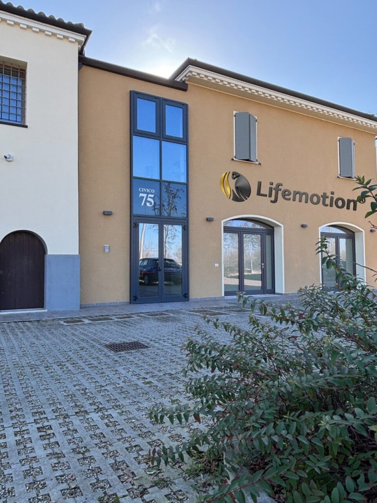 View of the entrance to the Lifemotion headquarters in San Giacomo Roncole, where engineering research, production, and corporate coordination intertwine with the biomedical ecosystem of the Mirandola district, a historic hub of expertise in the medical devices sector (Photo: Alice Luppi/Lifemotion)