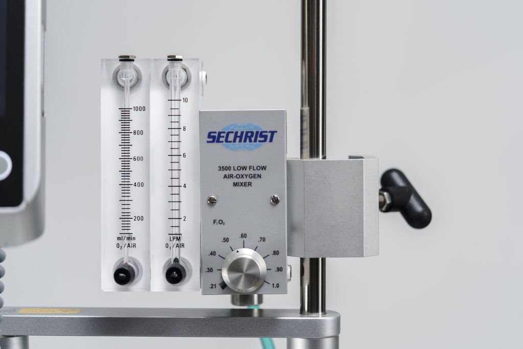 Air-oxygen mixing and flow control module, part of the technological ecosystem that allows fine-tuning of respiratory parameters in the ECMO circuit, an essential element for adapting extracorporeal support to the evolving clinical conditions of the patient in intensive care (Photo: Lifemotion)